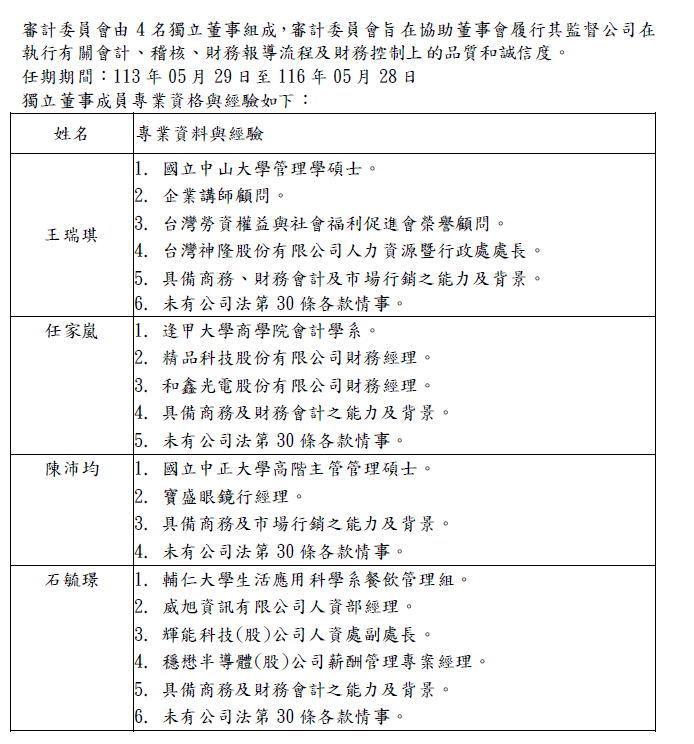 主要經歷:精品科技股份有限公司財務經理
